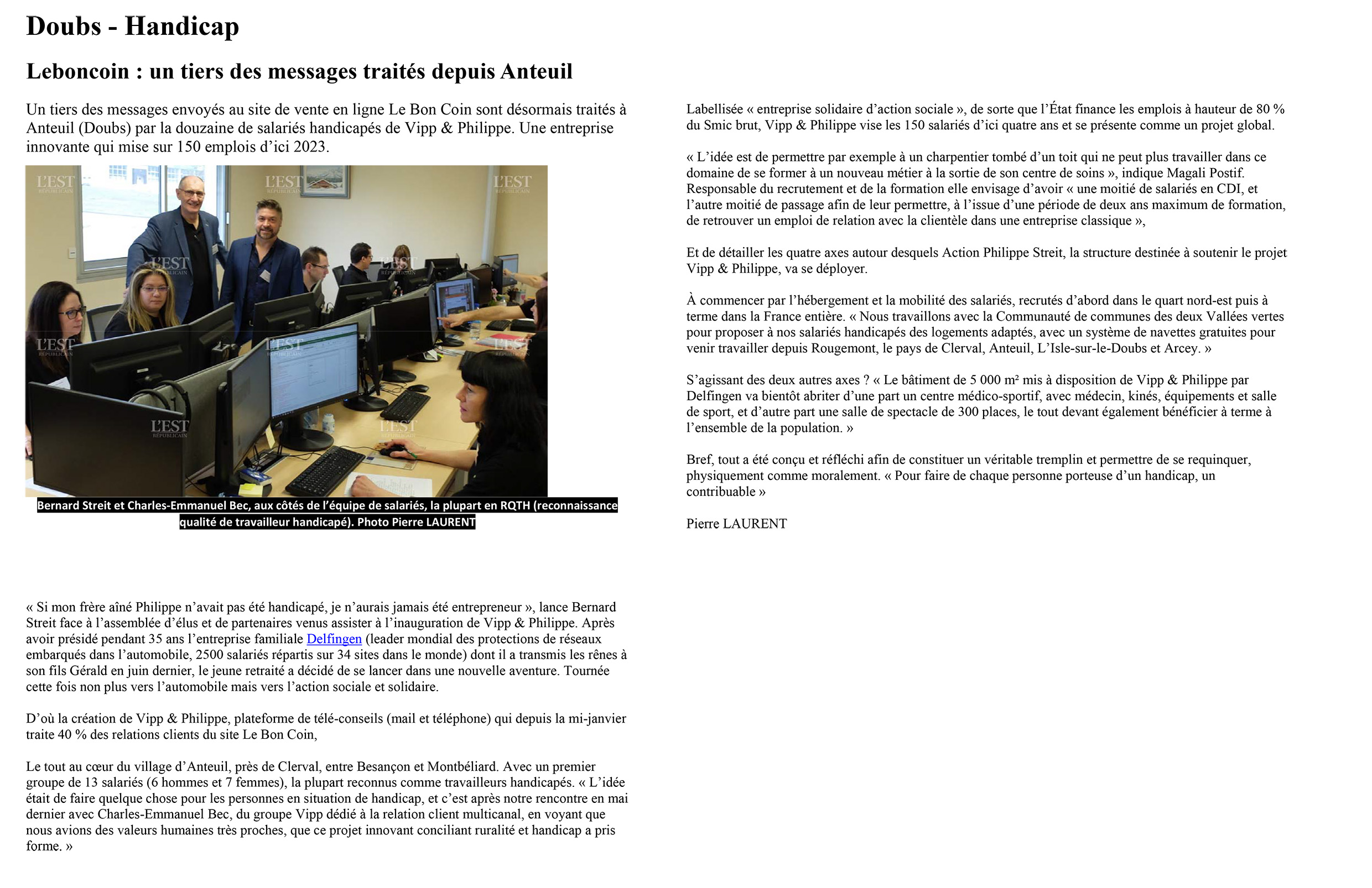 Normand, Laurent Grenier avait choisi l’ENSMM, l’école d’ingénieurs des microtechniques de Besançon, plutôt que Lille, pour sa position plus méridionale, ditil en souriant. Il avait ensuite fait « le tour de France » en travaillant chez Valéo, Airbus, Facom, Saint-Gobain puis Saica avant d’atterrir à Novillars, dans le Grand Besançon, où il compte bien rester.